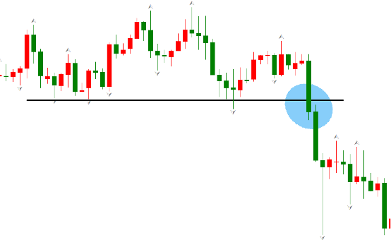 在画阻力支撑线时,影线是可以忽略不计的。如上图,黑色支撑线在前两个支撑点之下,但穿越了第三个支撑点的影线。即便我们将支撑线小幅上移,全部穿越三个支撑点的影线也无所谓。唯一的要求是,阻力支撑线不能过度原理大部分阻力支撑点,它最好处于相对适中的位置。